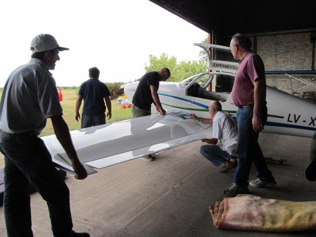 Colocando las fundas a las alas para protegerlas en el traslado