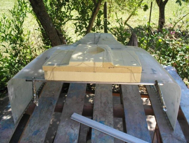 El capot inferior donde se puede observar que utilice muy poco del anterior (solo la parte donde están colocadas las aberturas naca y la bisagra de unión).