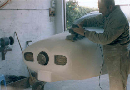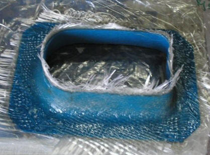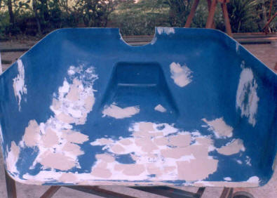 Aquí ya con dos capas de tela de vidrio de 300 grs. laminadas con resina poliester.